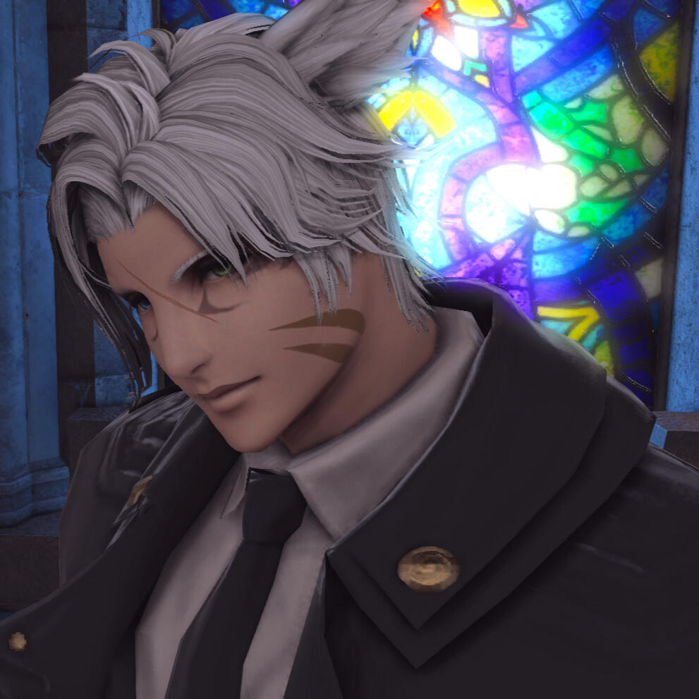 Like all of his blood lineage, Helios is a Miqo'te Keeper of the Moon. With pale skin, large pupils, and a fluffy tail. He has short, untamed white hair that vastly contrasts his Heterochromia birth defect of one eye as blue as the Limsian sea and a green eye, like the lush forests surrounding the city-state of Gridania. His stature is taller than most Maqo'te, but being around his siblings of House Durendaire, he was always the shortest among his Elezen brothers. However, his build was thicker with wider shoulders, naturally strong legs, and a muscular torso.His clothing consists of warmer attire due to the cold weather in Ishgard, something insulated and heftier boots for when venturing into the ice-covered tundra near Falcon's Nest where he and his brothers used to play as children. His brothers were always able to ‘prance’ atop the snow due to their lighter weight. But he was heavier, and therefore sank with each step he took in the deep snow.Now that Helios has left his home in Ishgard, taking up residence in the hub for trade and sellswords, he has had to adapt again to the extreme changes in temperature. Lighter, sportier attire depending on the task at hand.